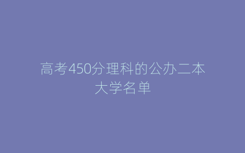 高考450分能不能上二本这要根据每个省份文理科的二本分数线和各学校在每个省份的录取分数决定,小编以广西为例,给大家整理出了高考450分能上的二本院校名单汇总。 如果其它省份的考生想要了解450分左右的二本公办大学理科有哪些的话,可以选择登录广东成人高考教育网站,选择“按分数选大学”,筛选办学性质,就可以查询到了,还能够查询到能上的大学的录取概率。目前各大手机应用市场均可下载。