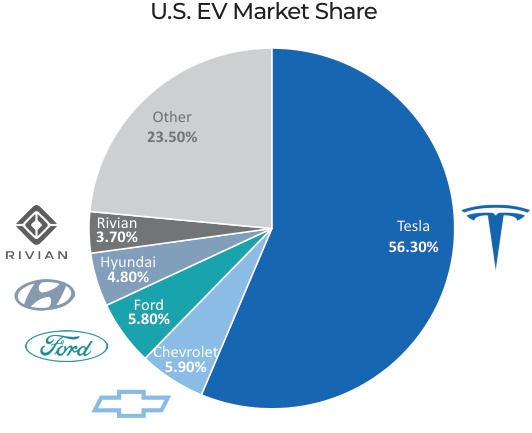Tesla dominates the U.S. market with a 56.3% share, while Rivian only accounts for 3.7% (2023 data). The commercial sector has benefited from Amazon’s orders, but the consumer side has been squeezed by competing products such as the Ford F-150 Lightning and GM Silverado EV.