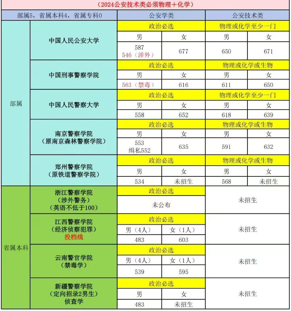 - 专业类型:公安技术类(需物理+化学)分数通常高于公安学类(需政治)。