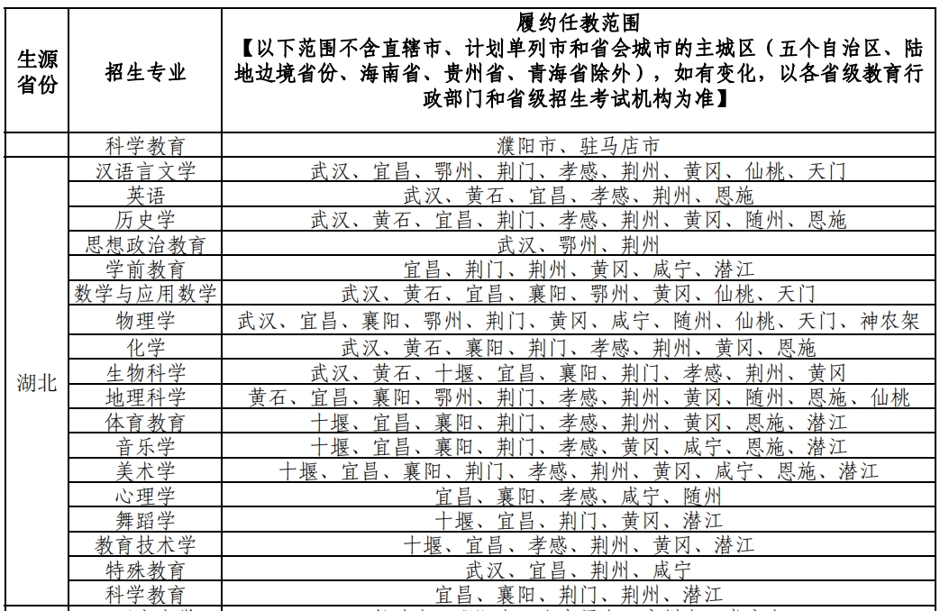 2025年国家公费师范生政策为“4+2本硕连读”,报考条件包括:参加高考、愿意长期从教、分数达标、身体健康等。公费师范生毕业后应按照入学前签订的就业协议,到指定地点履约从教6年,各学校各专业具体分配去向如下文所示。