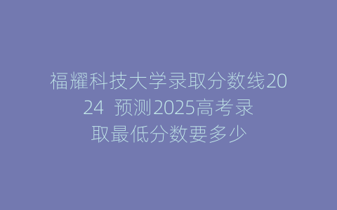 关于福耀科技大学2024年录取分数线及2025年预测的详细分析如下: