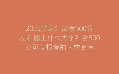 500分在2025年黑龙江高考中属于中上水平,文科考生可重点报考省内外师范、财经类院校,理科考生可瞄准医学、工科类高校。建议结合专业兴趣、院校地域及就业前景综合选择,并密切关注官方发布的最终分数线和招生计划。